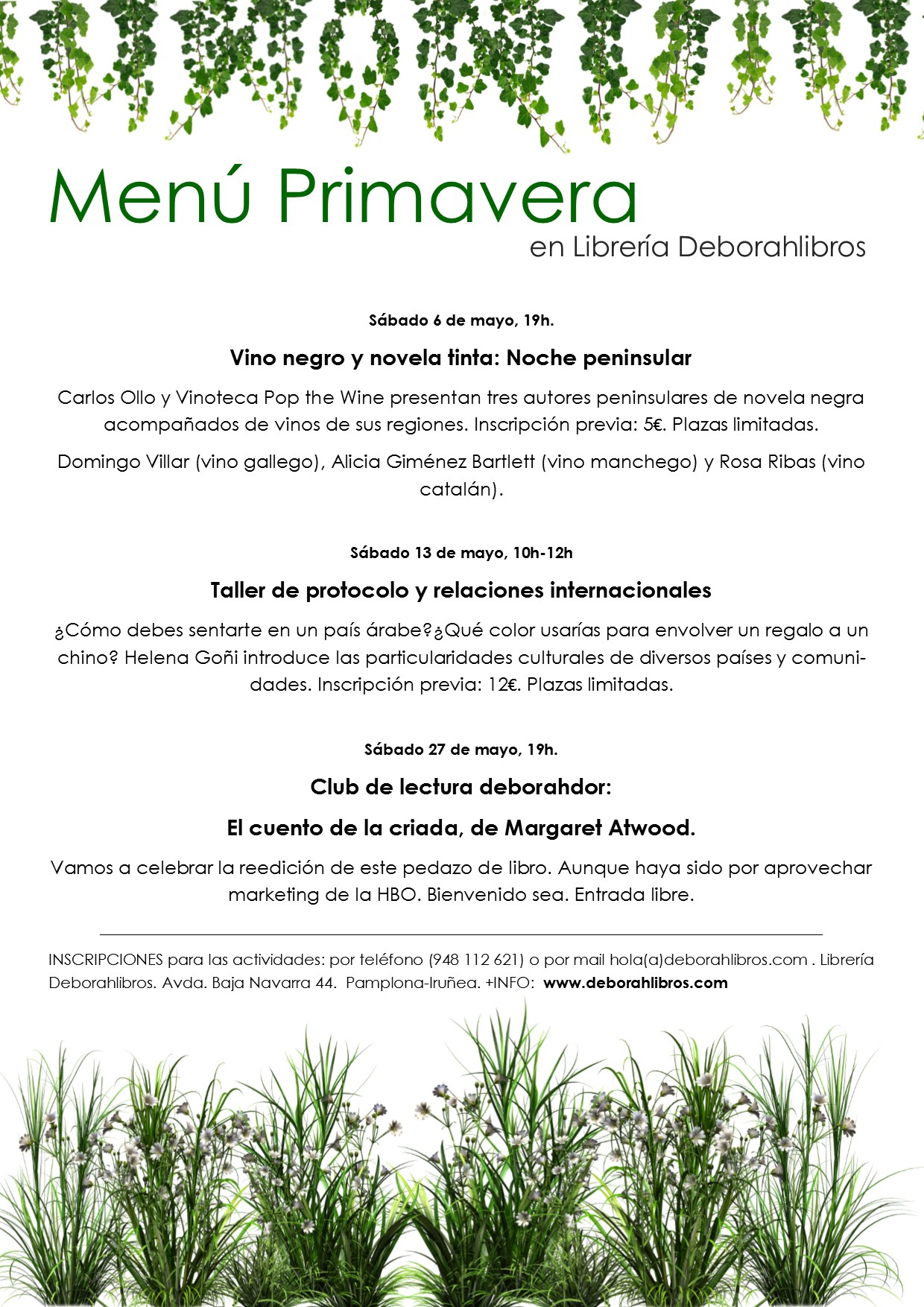 INSCRIPCIONES por teléfono: 948 112 621 y por mail: hola(a)deborahlibros.com.