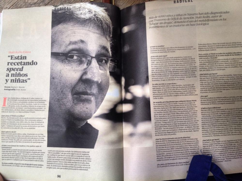 Además de bordar en su Cantina unas maravillosas «zanahorias morunas», seguidas de una glo-rio-sa «empanada de verduras con humus» y coronar con una cuajada de chocolate (lagrimillas a punto de saltar a lo Candy Candy), además, digo, los de Katakrak se han metido a editar. Este título que cumple el perfil de «recomendado para padres y educadores» a rajatabla se presenta con apropiada introducción de «El Drogas» (a.k.a. Enrique Villareal) y se sale de la norma tanto por el formato (combina el texto con cómic) como por la selección de sustancias. Tres eran de esperar (alcohol, tabaco y cannabis) pero el cuarto en discordia convierte el libro en un petardazo. Se trata del Metilfenidato (mph), más conocido, al menos por servidora, por «speed» y lo que el sistema enchufa a niños «diagnosticados» con TDAH. Para entender las comillas anteriores hay que leerse el libro y encontrar lo mejor de este: cómo escarba Redín para contarnos de dónde sale esa droga, cómo se determina si un niño «sufre» TDAH, conexión con farmacéuticas y relación con recortes en educación. Cómo andamos a dios rogando que nuestros hijos no se droguen y con el mazo -del speed- dando. Unos 4.000 críos en Navarra. Se lee pronto. En mi opinión el libro cuenta con los cuatro pilares requeridos (accesibilidad, profundidad, autocrítica y sentido común) para convertirlo en necesario. Gracias, Iñaki Redín y zorionak, katakrakeros.